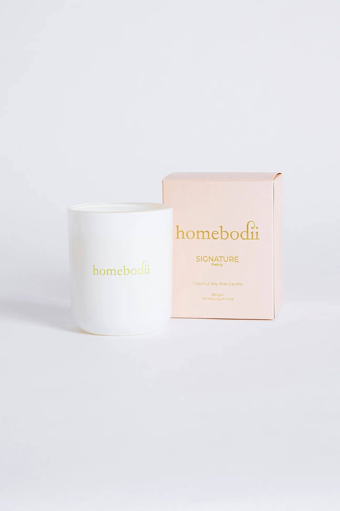 Transform any space into a cozy haven with the Homebodii Signature Candle, a fragrant journey inspired by the flower markets of Europe, boasting our cherished Peony scent. This Coconut and Soy candle, lovingly hand-poured by local artisans in Australia, embodies the essence of shared moments. From our home to yours, let its warm glow be a beacon of friendship, illuminating the bond that makes your place uniquely inviting. Light up your best-friend moments with this heartfelt creation.