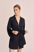 Boasting a sleek silhouette and timeless allure, The Evie Robe exudes sophistication with every wear. Wear it as a robe for cozy evenings at home, or layer it over the Minka Short Slip as a chic jacket for an effortlessly stylish look. For a coordinated ensemble, pair it with the Tahlia Lounge Pants and Leda Cami Set for the ultimate in elevated loungewear.