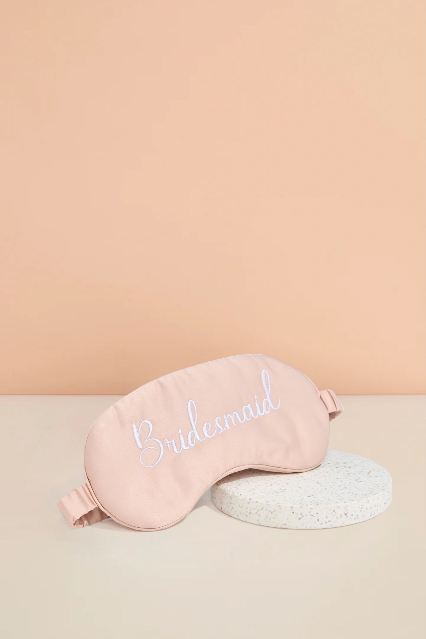 Elegantly embroidered with "Bridesmaid" in delicate script, this eyemask adds a touch of sophistication to your bridal preparations. The smooth satin fabric ensures a comfortable fit, helping you achieve a restful sleep before your big day.