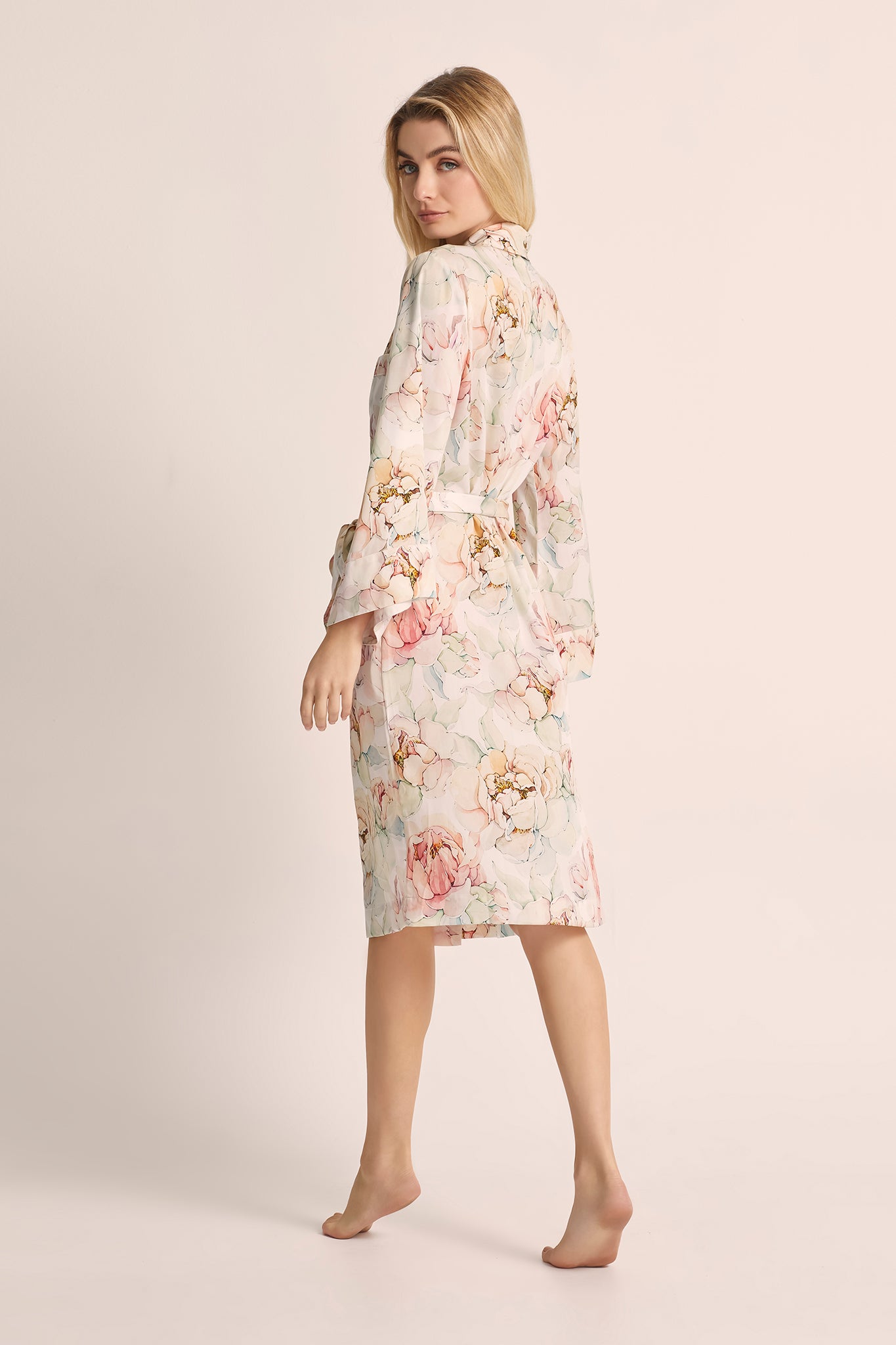 Peony Print in Watercolor: Immerse yourself in the timeless beauty of peony blooms brought to life with delicate watercolor hues. The Peony Print adds an artistic touch to your robe, creating a captivating visual masterpiece that's as enchanting as it is comfortable.