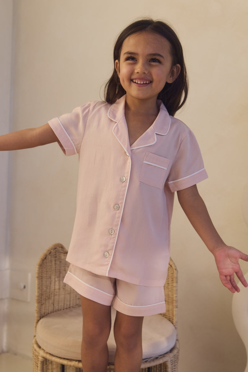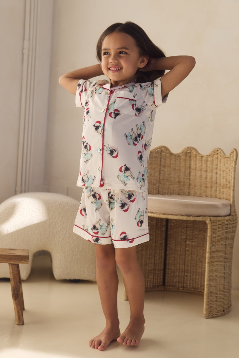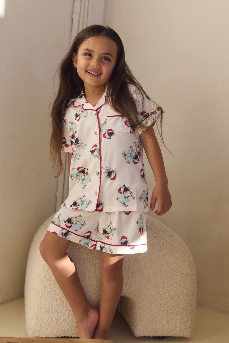 Homebodii’s Kids Pyjama Sets range includes beautiful mini-me versions of our favourite pyjamas, for those special matching moments, or just your little one’s introduction to luxury lounging! Our collection of children’s personalised pyjamas includes a selection of signature Homebodii prints and colours, complemented by delicate piping details and short-cut styles. Bedtime can’t get any cuter with our Ruby Pug Children’s Piping PJ Set, featuring an exclusive Homebodii print. Our Piper Bubble Cotton Children’s Short Pyjama Set features a waffle material design, and is made with the softest cotton – ensuring your little one the sweetest sleep. Plus, our children’s range comes with matching adult pyjamas, for sweet Mummy & Me bonding.