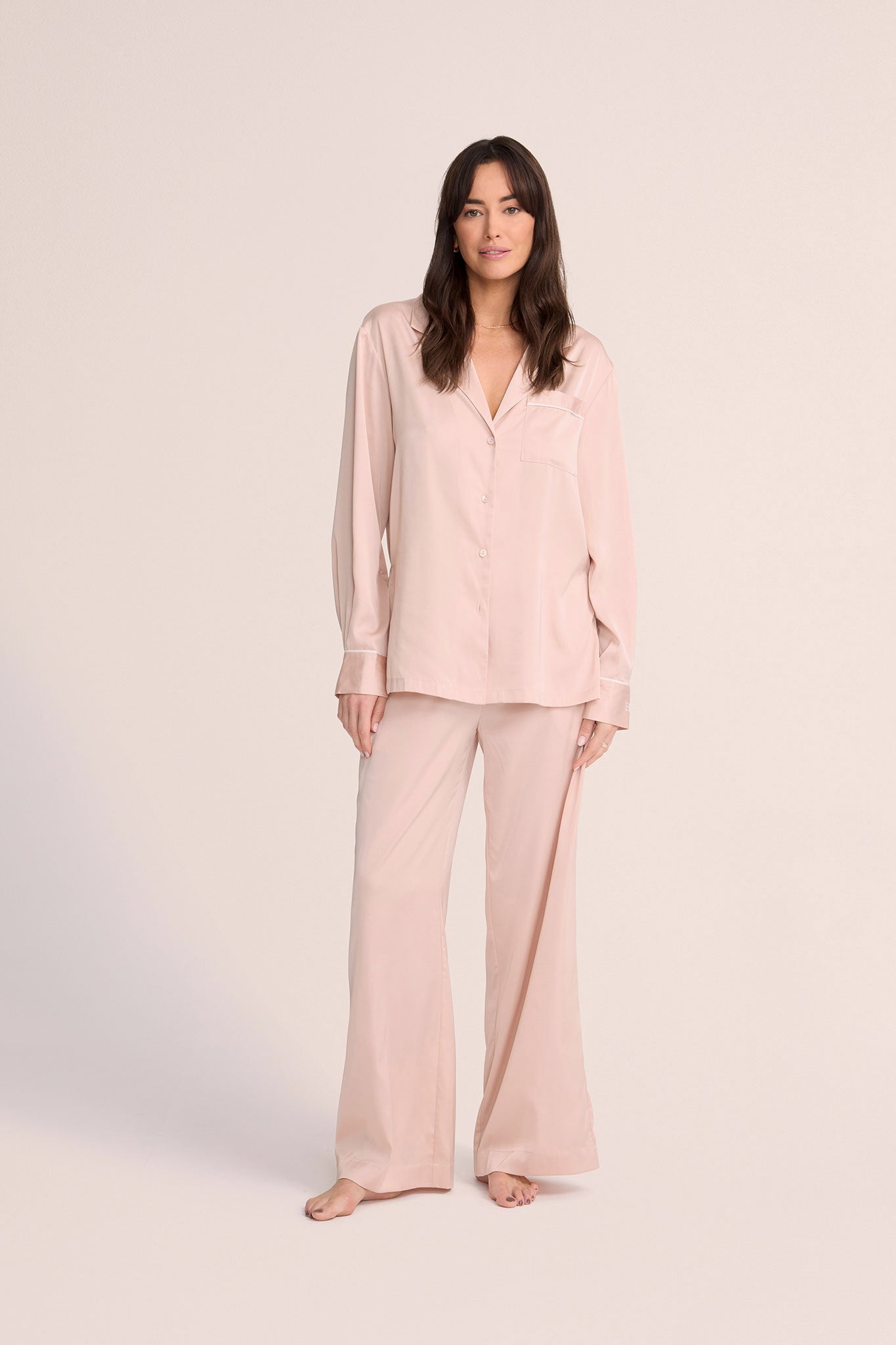 Elegantly finished with piping trim, this pyjama set combines classic design with modern sophistication. Whether you're unwinding after a long day or enjoying a leisurely weekend morning, the Homebodii Grace Pyjama Set is your go-to for stylish comfort. Treat yourself to the ultimate in nighttime luxury and elegance.