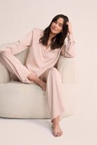 Grace Lounge Pyjama Set - Blush with White Piping