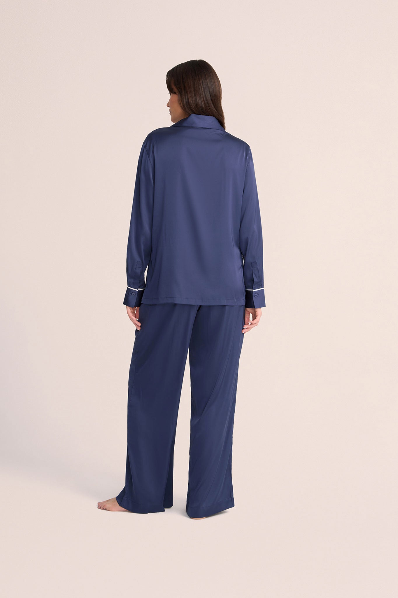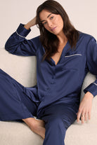 Grace Lounge Pyjama Set - Navy with White Piping