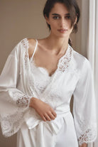 An ideal selection for any special moment, the Sian Lace Robe guarantees you'll feel like a true goddess. Whether you're savoring champagne at a sophisticated soirée or enjoying an intimate evening with your loved one, this robe effortlessly radiates timeless allure. Immerse yourself in the lap of luxury with the Sian Lace Robe.