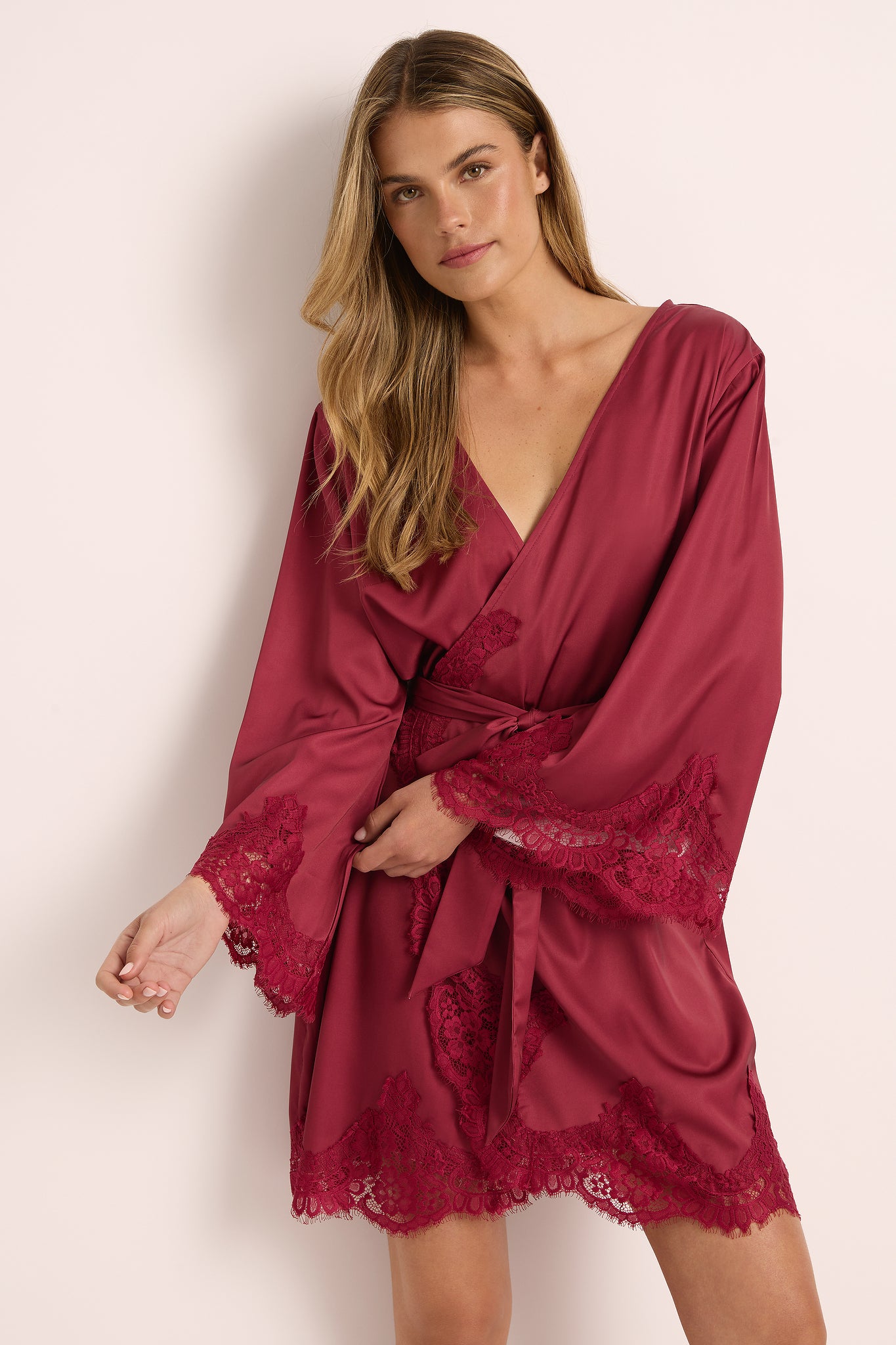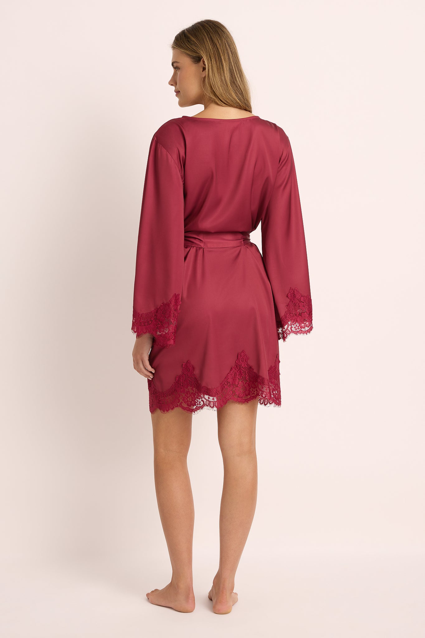 Discover the Sian Collection, a captivating ensemble of robes, camis, and slips designed to elevate your sleepwear to new heights of luxury. At the heart of this collection is the Sian Lace Robe, a masterpiece of elegance and sophistication. Crafted with meticulous attention to detail, this robe combines luxuriously soft satin with delicate cotton lace, designed to drape effortlessly over your figure and accentuate your natural curves. The cinching waist tie and tailored silhouette ensure a flattering fit, making it a perfect choice for any special occasion.