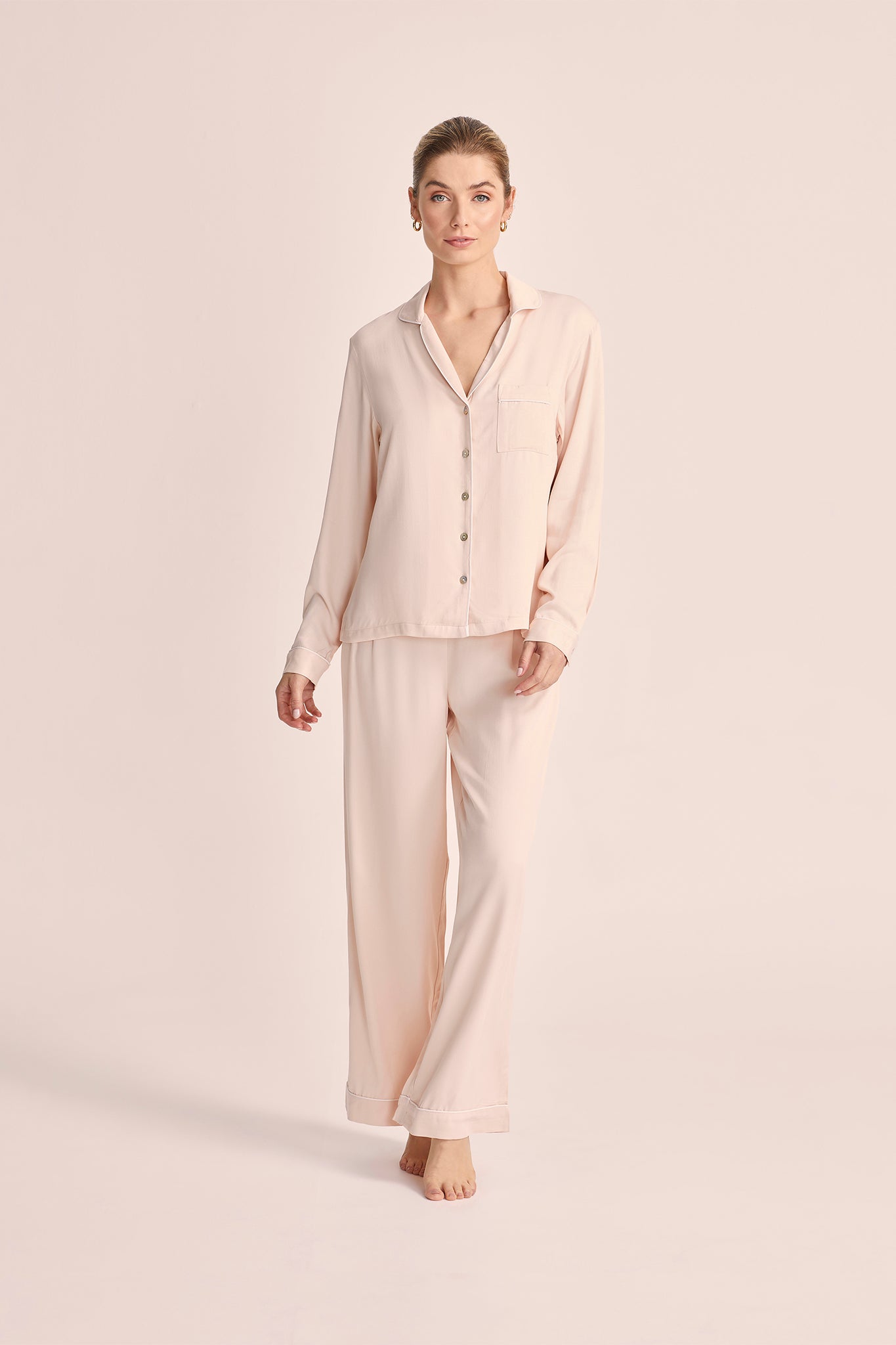 Our Sustainable Range can be found in all your favourite loungewear pieces, including sleepwear, cami sets, bralettes, nighties, robes, and more. Through the use of beautifully soft and comfortable environmentally sustainable fabrics like Certified Tencel, Lenzing Modal, and Stonewash Linen, we’ve found the perfect double win situation for you and our Earth! Our 100% Lenzing Modal material consists of certified sustainable botanical fibres, and maintains environmental balance by integrating into nature’s cycle through a closed loop production cycle that recycles water and has a 99% recovery rate.