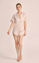 Introducing the Homebodii Grace Pyjama Set – a perfect blend of luxury, comfort, and elegance. Crafted from luxurious non-crush satin, these pyjamas promise to keep you looking effortlessly polished all night long. The fabric's gentle sheen and smooth texture offer an opulent feel against your skin, making your bedtime routine a little more indulgent.