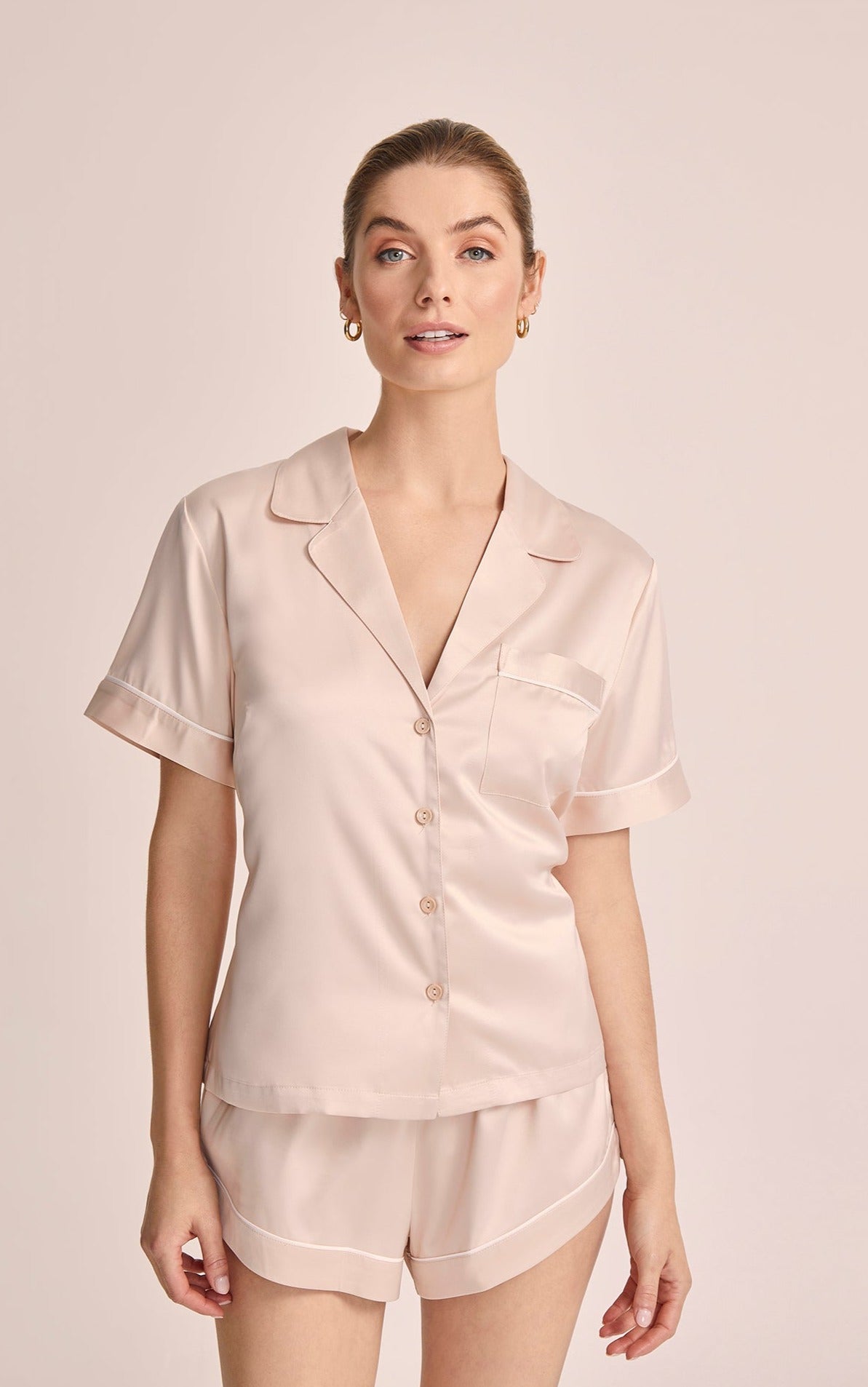 Elegantly finished with piping trim, this pyjama set combines classic design with modern sophistication. Whether you're unwinding after a long day or enjoying a leisurely weekend morning, the Homebodii Grace Pyjama Set is your go-to for stylish comfort. Treat yourself to the ultimate in nighttime luxury and elegance.