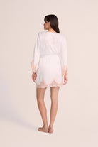 Celebrate your wedding day in ultimate style with the exquisite homebodii® white bridal robe, crafted especially for the bride. This luxurious robe is adorned with delicate "Bride" embroidery in elegant cursive on the back, stitched in a soft blush thread that subtly enhances its beauty. Framed with blush-toned lace, it’s the perfect touch to make you feel radiant on your special day.