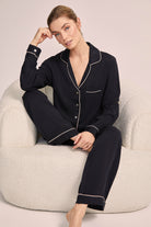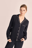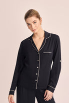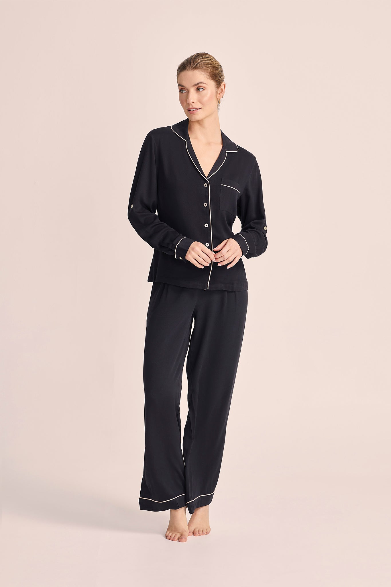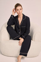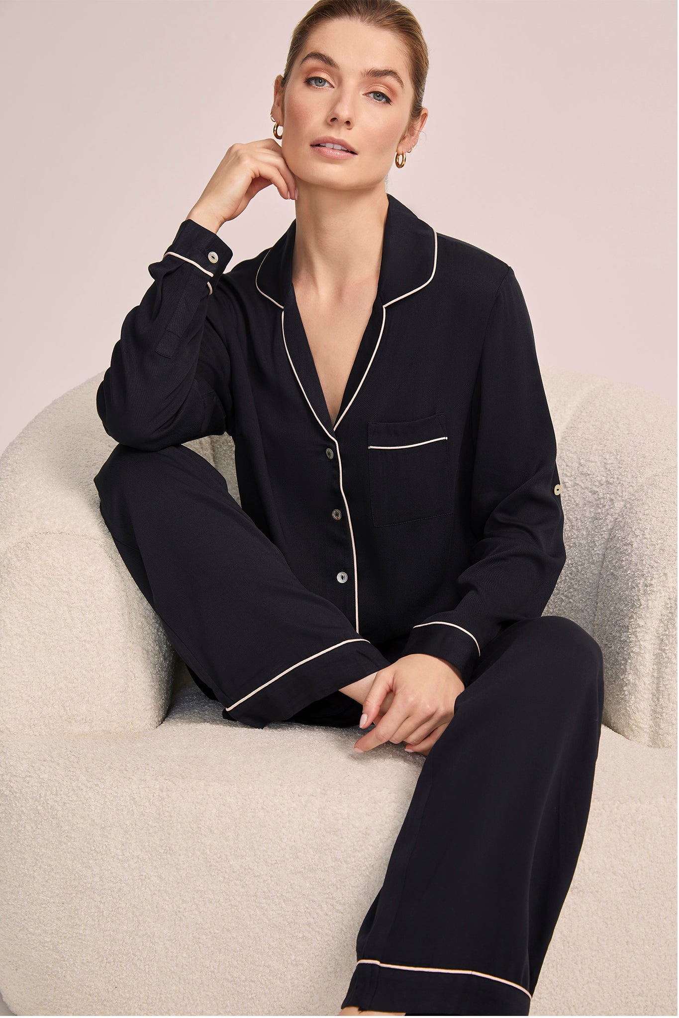 Eva Lounge Tencel™ Pyjama Set - Black with Blush Piping