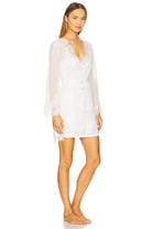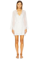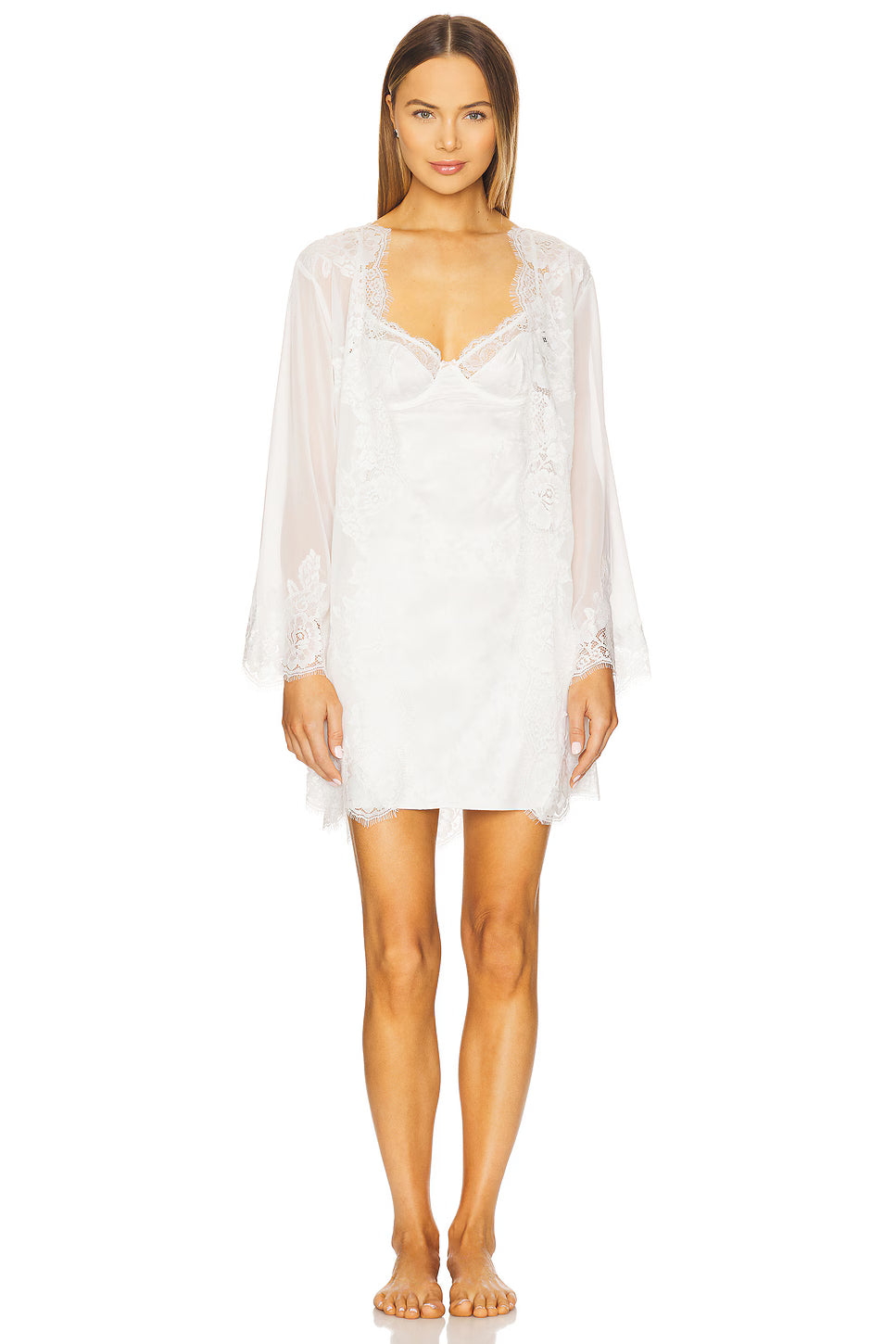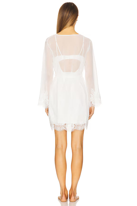 Enhance your elegance with our adored Helena lace robe. Meticulously crafted from semi-sheer white chiffon and embellished with intricate lace rosettes, this exquisite piece strikes the perfect balance between allure and refinement. Whether you're getting ready for a significant occasion or simply desiring a touch of sophistication, the Helena robe is the ultimate addition to your wardrobe.