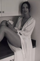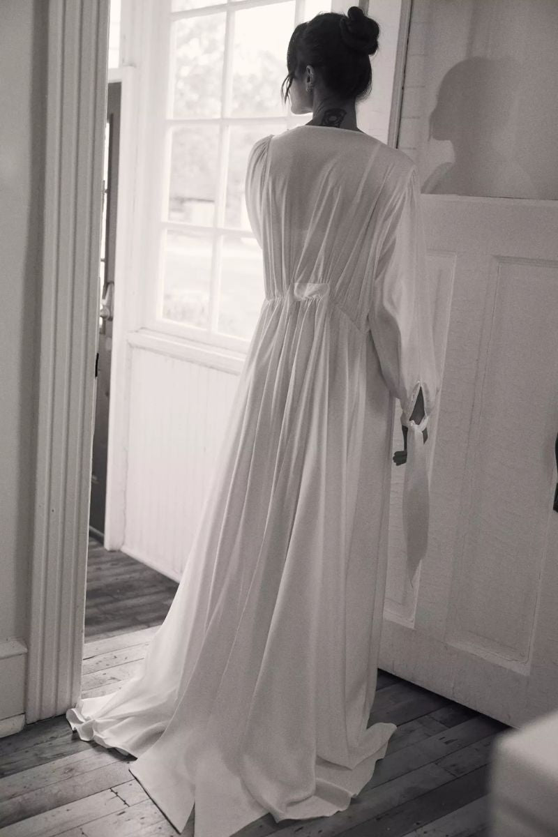 Introducing the Homebodii Hermione robe a captivating piece that embraces the wedding dress trend with sophistication and style.