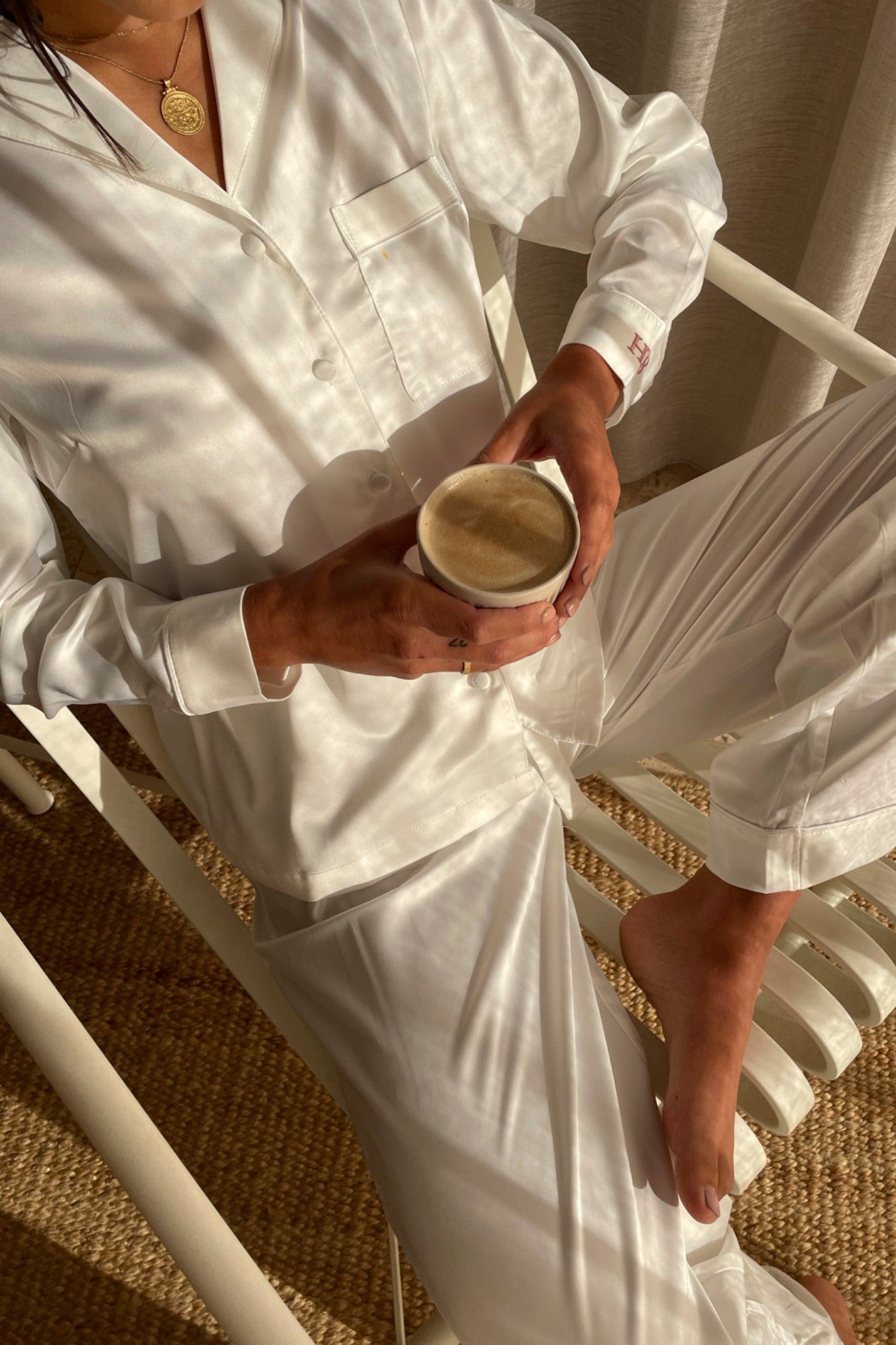 Whether you're planning a cozy night in or stepping out for an evening on the town, this chic set is your perfect companion. Elevate your experience by customizing your set with our complimentary personalization service, adding a unique and personal touch to your luxurious loungewear.