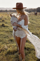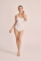 With its versatile style, the Valentina Bodysuit can be worn on its own for a sultry, statement look or paired with its matching lace our matching Valentina robes or best selling Farrah robe. Whether you're dressing for a special occasion or elevating your everyday wardrobe, the Valentina Bodysuit adds a touch of effortless glamour to any outfit.
